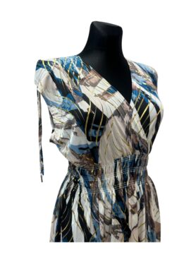 Midikleid ärmellos | Blau-Goldenes Muster | Viskose | Onesize 40–46