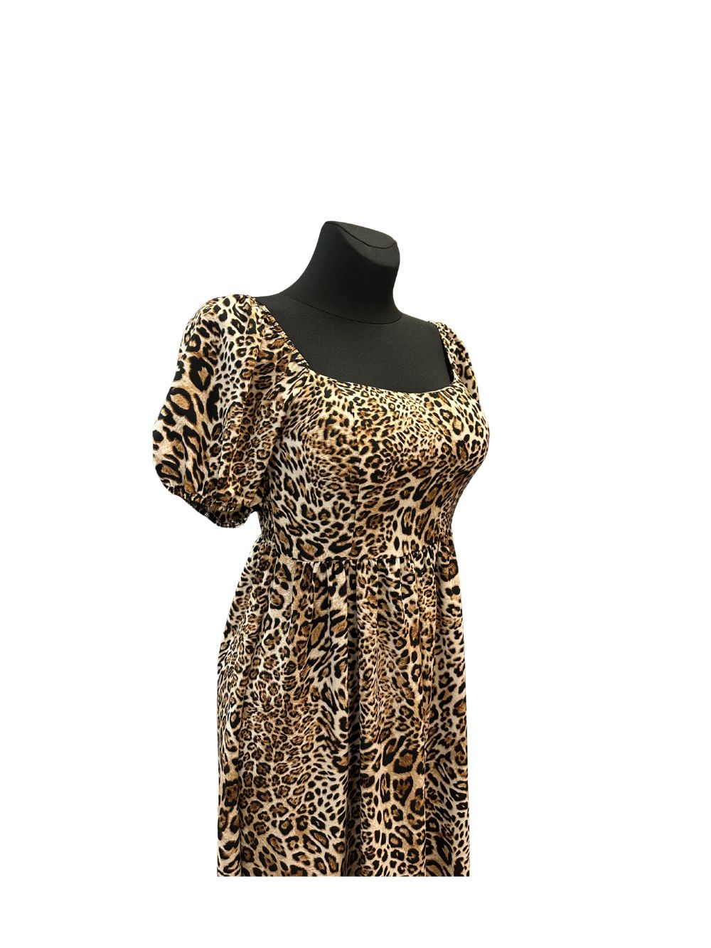 Maxikleid kurzarm | Leo Muster | Polyester | Onesize 40–44