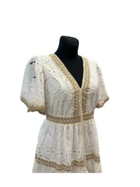 Midikleid kurzarm | Creme Stickerei | Baumwollmix | Onesize 40–44