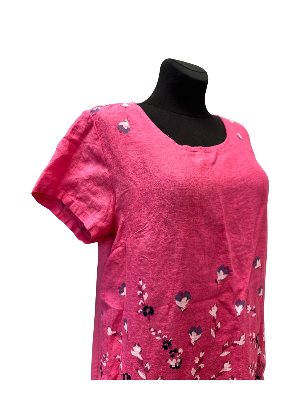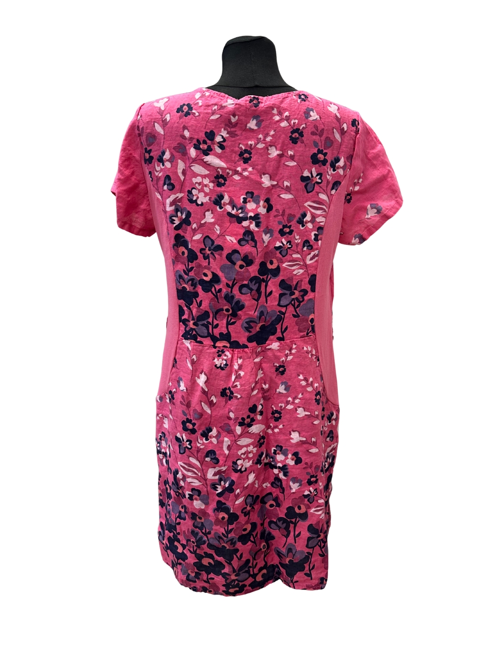 kleid kurzarm | pink mit blumenmuster | leinen | S–XL