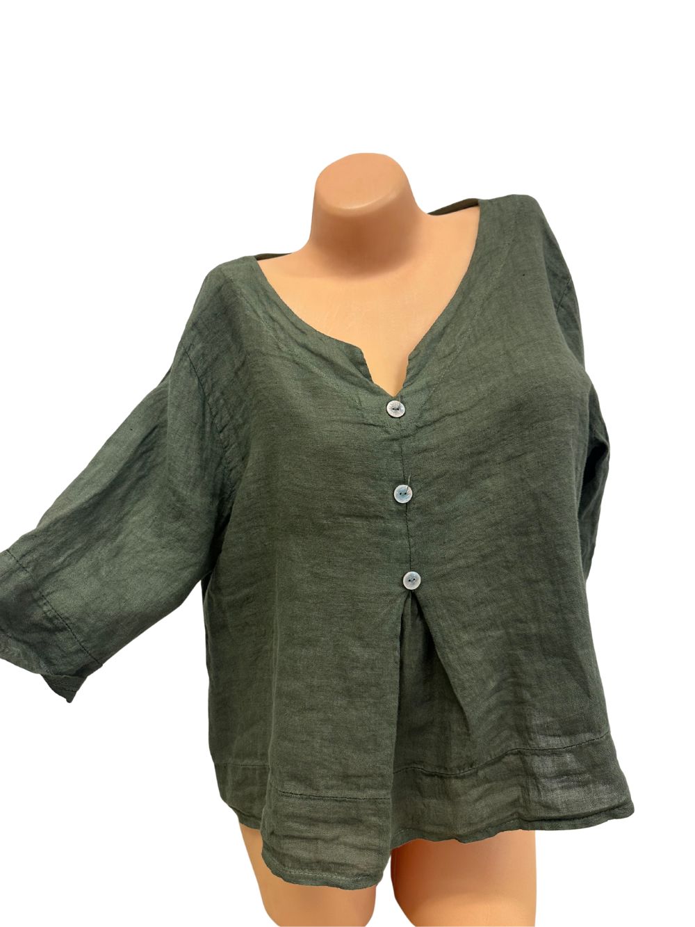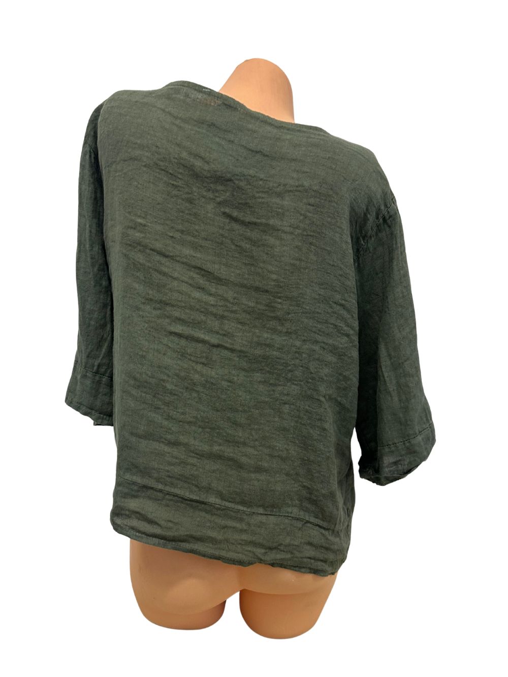 Leichte Leinenbluse | V-Ausschnitt | Dunkelgrün | Onesize 40–44