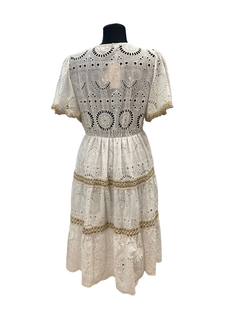 Midikleid kurzarm | Creme Stickerei | Baumwollmix | Onesize 40–44