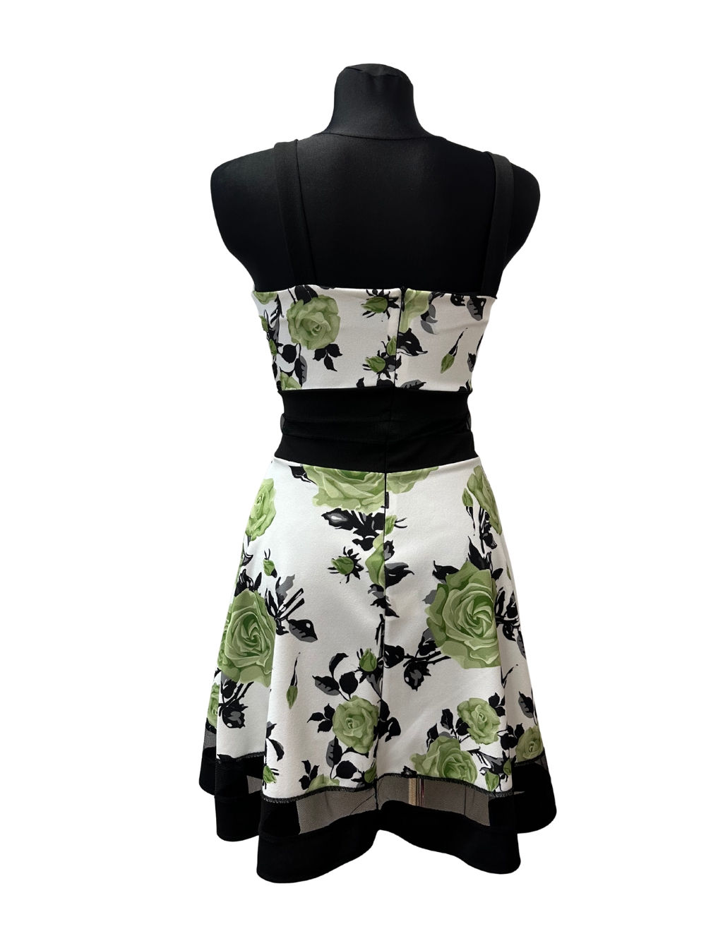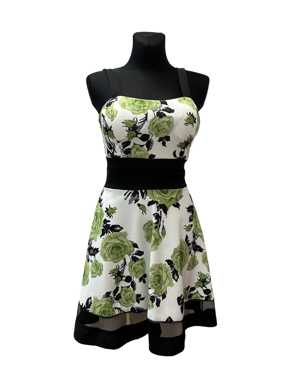 🌿 Sommerliches Kleid mit grünem Rosenprint – ein echter Blickfang